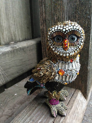 "This bird represents friendship. While I was working on this piece Scott befriended a very bold owl in the woods. I enjoyed seeing the little fellow close-up. It was quite a treat!"